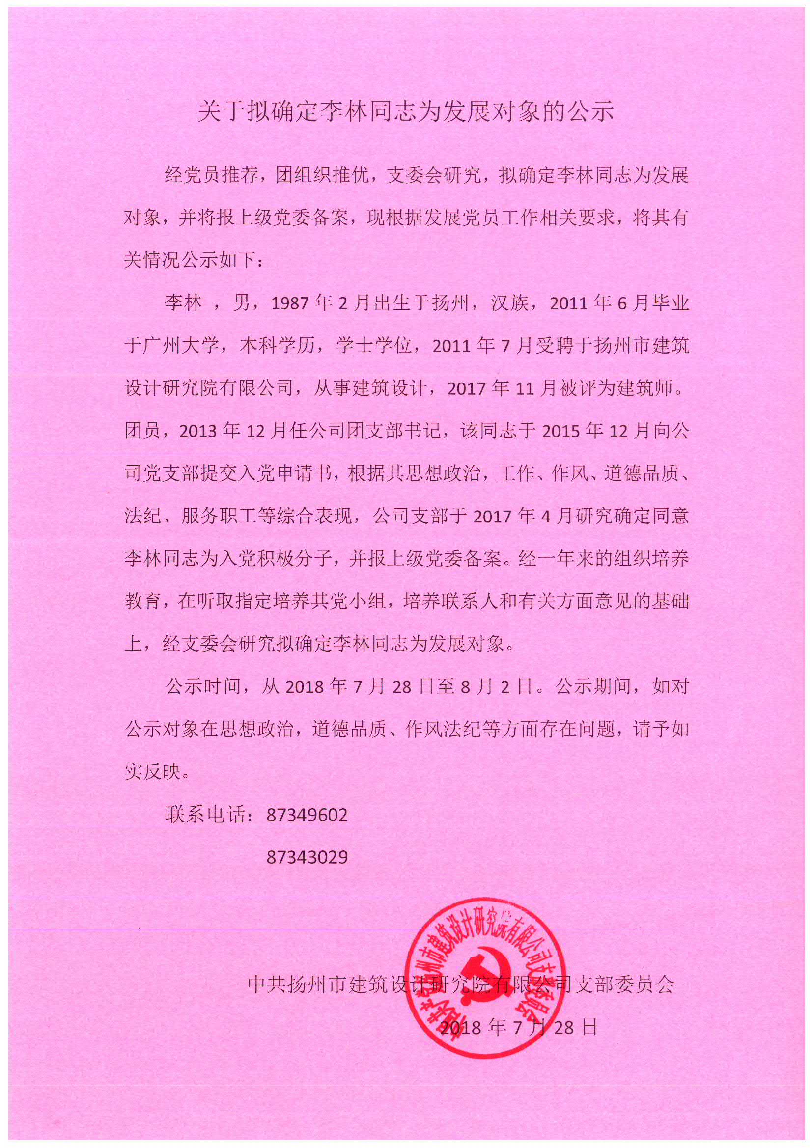 | ·關于擬確定李林同志為發(fā)展對象的公示 |